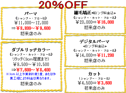 パーマ&カラー:17:00迄